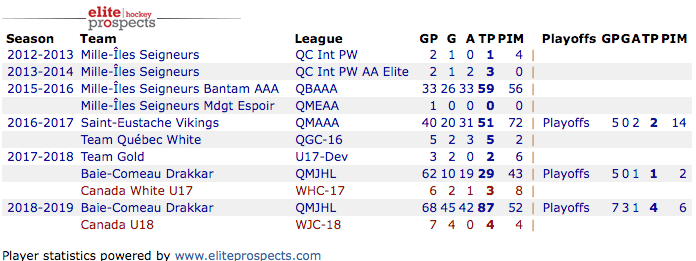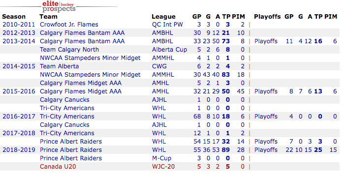 The third-year draft-eligible was an explosive player for Prince Albert this season. His skating is powerful, and his in-close skill makes him a consistent scoring threat. — Chris PetersHe can score effectively thanks to his quick release, he’s got quality vision that allows him to set up teammates, and he’s dramatically improved his skating over the last season or so — Hannah Stuart