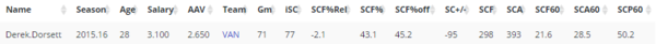 While his Corsi metrics were improved upon, Dorsett’s goal metrics were amongst the worst on the team. Some of this is luck driven, as Dorsett’s on-ice save percentage was lower than normal. Overall, the Canucks fared significantly worse when Dorsett was on the ice compared to when he was on it.