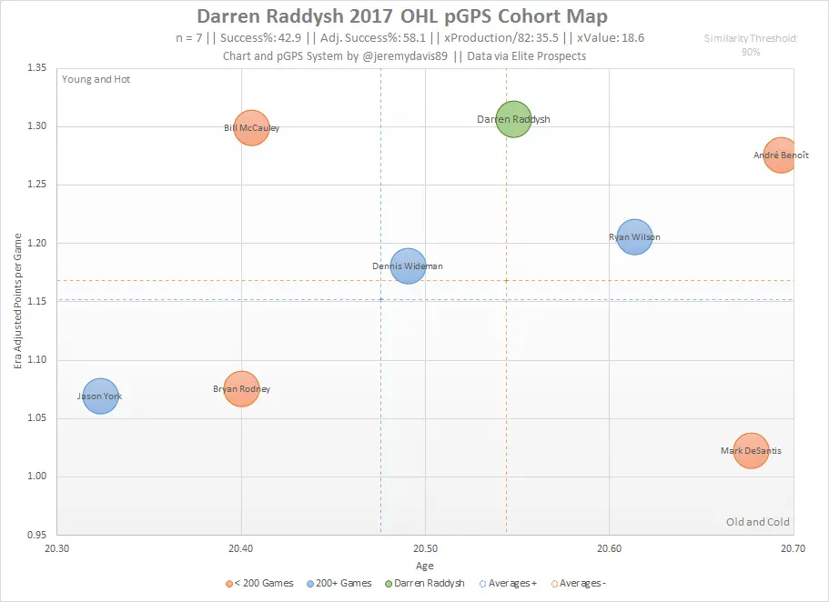 Raddysh is certainly an exception. His sky high numbers net him only a small group of comparables, but it’s a group from which 43% went on to play at least 200 NHL games.