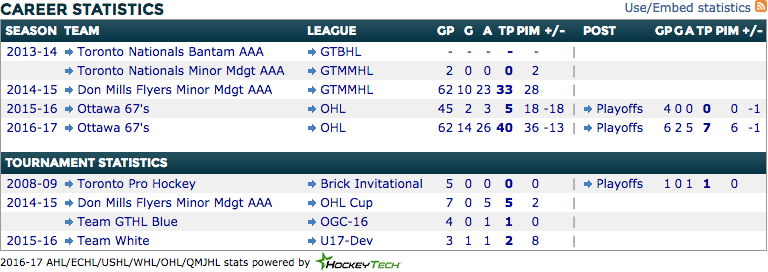 His popularity waned in the second half of the season, and plummeted in the OHL playoffs, after Formenton went all 14 games without scoring a point. Even during the regular season, the 34 points he scored in 65 games don’t really warrant consideration in the first two rounds. Statistical analysis through both SEAL and pGPS yielded underwhelming results, with an expected rate of success barely in the double digits. Those in his cohort that did stick in the NHL include the likes of Matt Halischuk, Chris Kelly, and Matt Stajan.