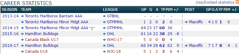 - Draft Year Team: Hamilton Bulldogs (OHL)