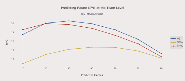 That’s the whole purpose of Expected Goals. There are a variety of methods of creating this metric, though they are all similar theoretically, and they are all highly efficient at predicting future offence. Take Dawson Sprigings’ version for example, which has been shown to be more effective at predicting goals-for percentage at the team level than even Corsi-for percentage, the previous goal standard.