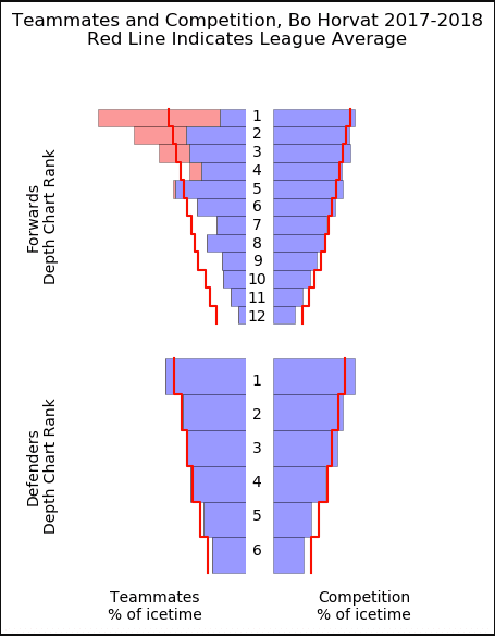 Horvat’s deployment last season appeared more the part of a middle-six centre than a first-line pivot. The visuals perhaps undersell the concern over quality of competition given that last year’s data is skewed by the final 15-20 games of the season.