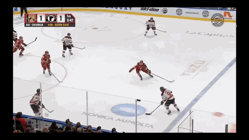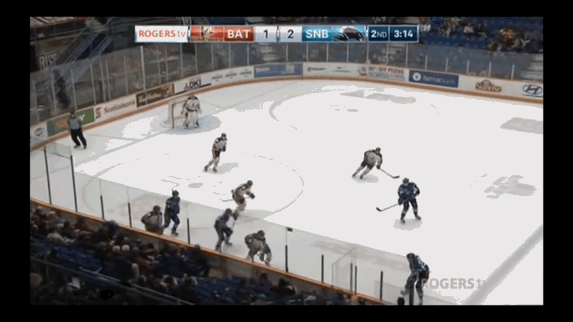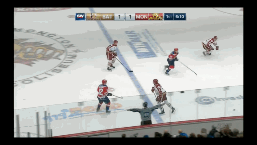 On the surface, the second clip may seem like an elementary check, but watch Dobson’s movement before the pass is even made. He shifts to the corner in anticipation of a pass as soon the Rempart’s forward picks up the puck at the half-wall.