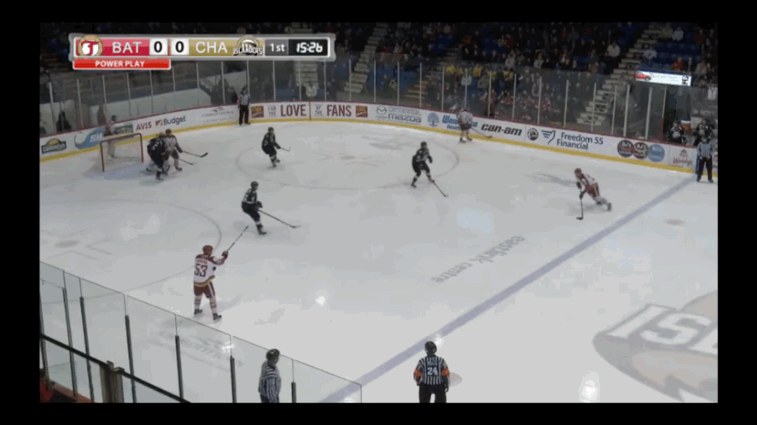 Down low, both players are strong, but it’s Dobson that holds a slight edge with his mobility. The Summerside, PEI native relies on his deft edgework to maintain a tight gap; choosing to activate his strong stick work to disrupt possession when he sees the attacker expose the puck for even a split second.