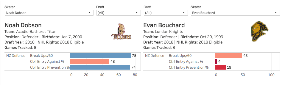 The difference between the two’s neutral zone defence is also apparent when comparing CHL microdata.