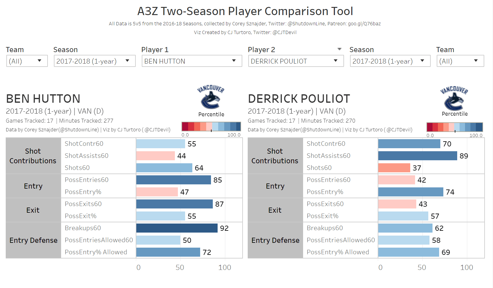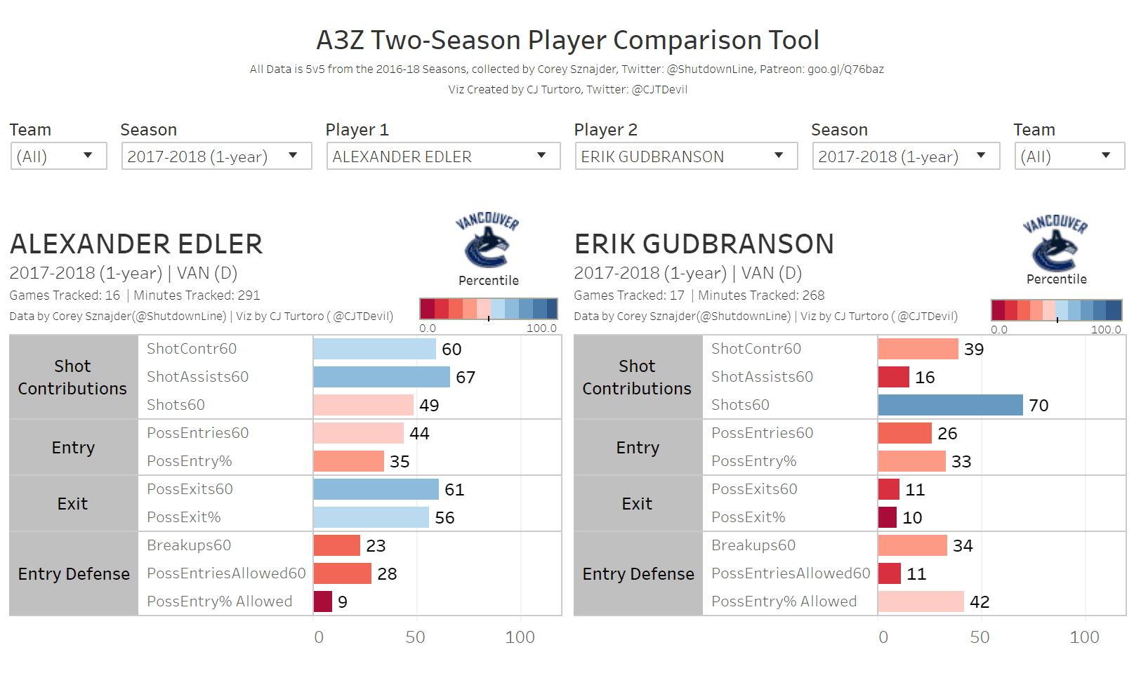 (As a side note, Ben Hutton’s numbers indicate that he’s an extremely misunderstood player. Despite being billed as an offensive defenseman, Hutton was a below-average defender in terms of shot assists, but was the team’s most adept defender with regards to preventing controlled zone entries.)