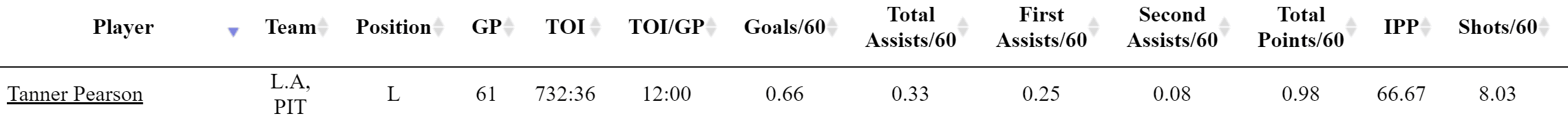 Unfortunately, things went a little off the rails this season. Pearson was held to just one point over 17 games in LA before being flipped to Pittsburgh for Carl Hagelin. Things got slightly better from then on, but Pearson never really found a comfortable spot in Pittsburgh and improved to just 14 points in the 44 games he played for the Penguins.