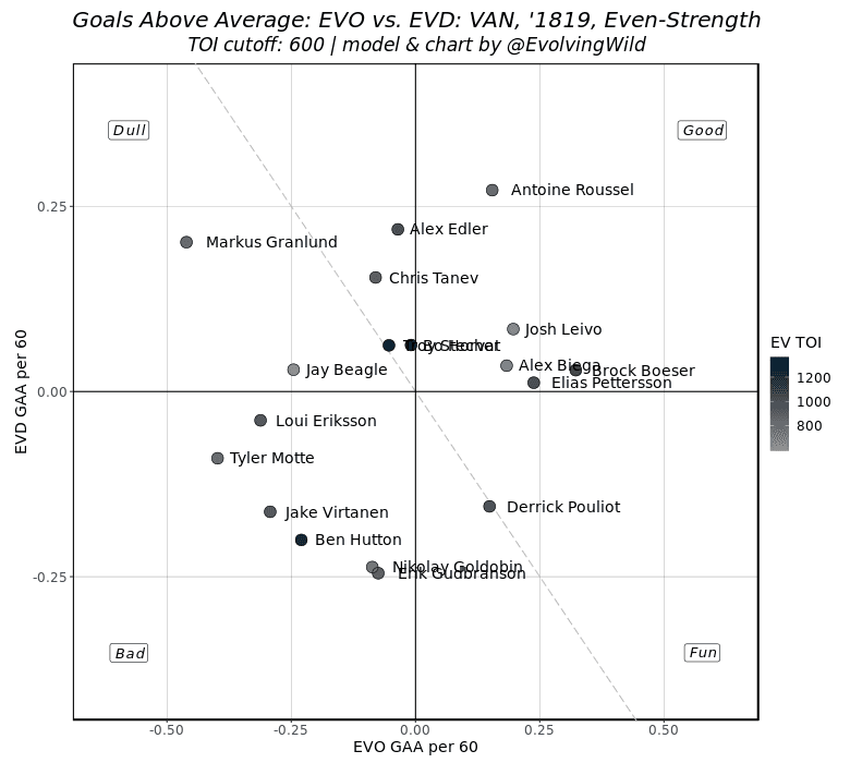 According to Evolving-Hockey’s EVO vs EVD Good, Dull, Bad, Fun chart, Granny is the dullest player on the team, and it’s not really close…