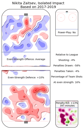 Furthermore, Zaitsev has five more years left on his contract that will come with a cap hit of $4.5M per season. That is a heavy contract that doesn’t generate much offence, gets buried in shot-share, and doesn’t particularly play a physical game.