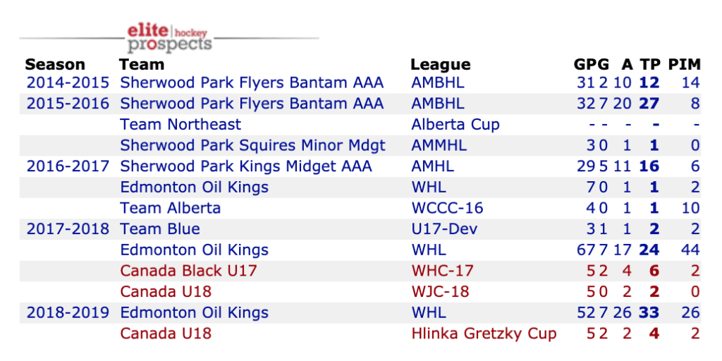 At six-foot-four, 198-pounds with great mobility, Matthew Robertson is an attractive option for NHL teams looking for a solid two-way defenceman. If Robertson was a right-shot defenceman, his stock would be even higher.“I had some injury and some adversity that I faced through the year, but I think now it’s coming together and so is the team,” Robertson said following practice Monday. “We found some success and we just want to keep moving forward. I’m playing with some confidence, but I’m not trying to get too high. I just want to keep playing my game and going out there every day, not letting anything distract me and just playing a team game.” – Derek Van Diest, Edmonton SunStrong and mobile two-way blue liner with a team-first attitude who handles both big minutes and big situations with maturity and confidence. Robertson is a throwback to the Western Canadian defensemen of old who were able to intimidate with physicality or their play with the puck. He’s clearly the top defender for the Oil Kings by the way he’s used at even strength and special teams, and how often Robertson is being summoned to address his coach’s concerns. His size, long reach and timing makes him close to impossible to beat one on one, and few teenage defensemen can force opponents into so many unsuccessful zone entries simply by standing up at the blue line. He’ll respect oncoming speed by giving himself more room, but Robertson’s long stick and strong upper body keep the majority of puck carriers to the outside. Robertson has soft hands and sharp hand-eye coordination that allows him to corral pass attempts cleanly and quickly transition from defense to offense. He’s not entirely married to the slot, but he keeps his head up and always looks for gaps to cover. – Steve Kourianos, The Draft Analyst