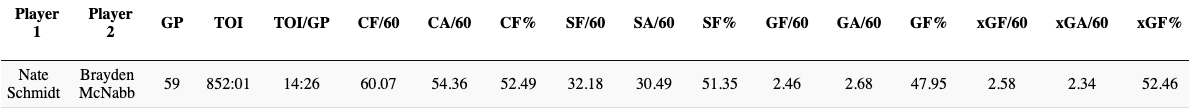 Similar to Edler, McNabb is a bit more of a stay at home defenceman than Schmidt, and the duo were still able to thrive playing tough minutes with one another.