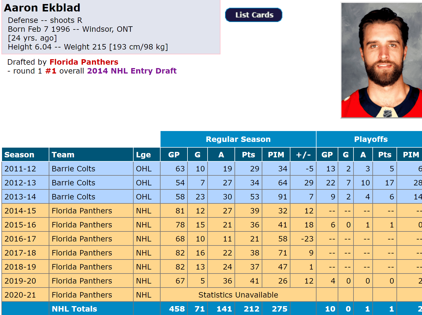 Ekblad signed an 8-year extension with an AAV of $7.5 million back in 2016, a contract that will expire in 2025.
