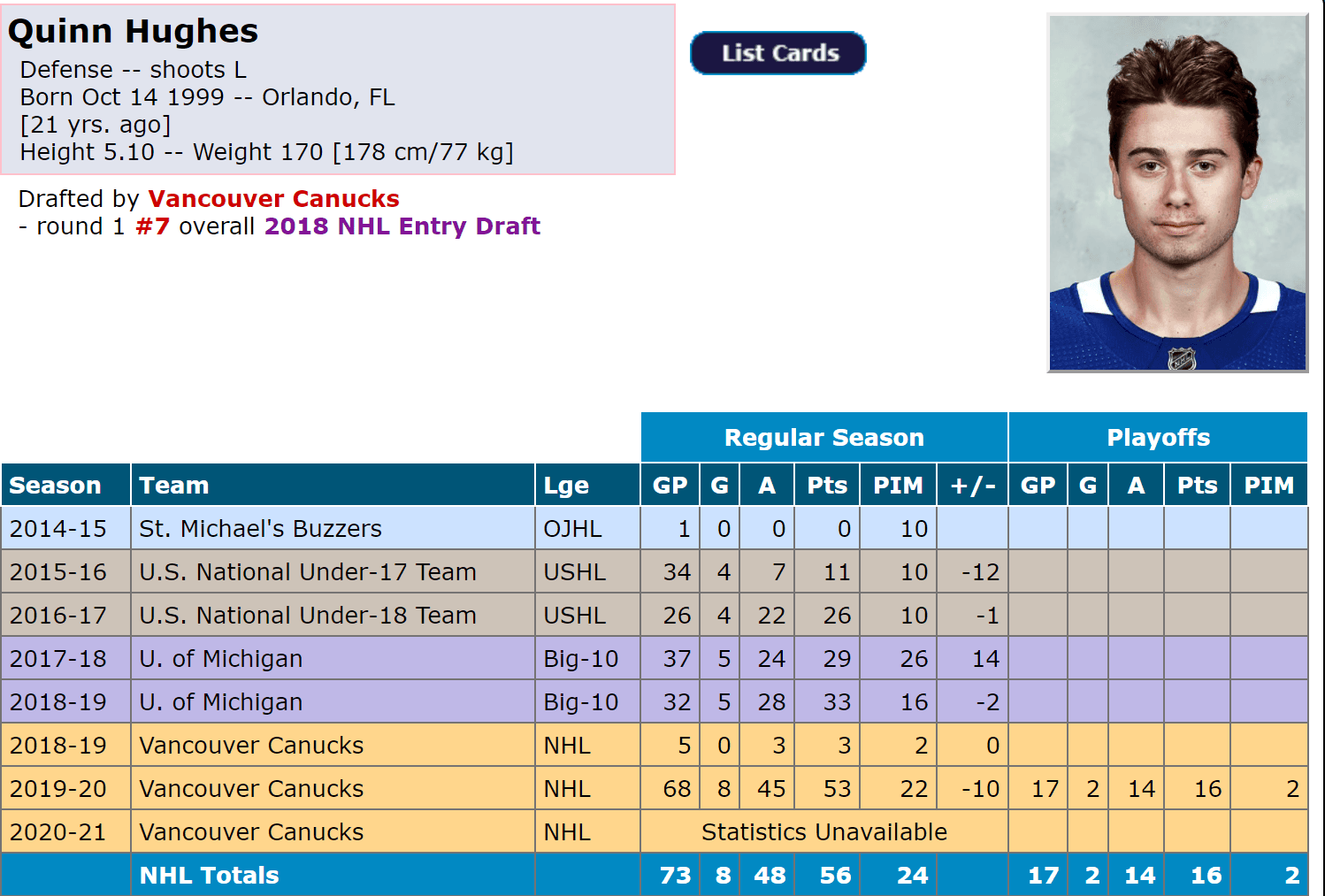 So there we have it, ten comparables for Quinn Hughes’ second contract. I’m not going to lie, I’m a little more confident in the comparisons used for Elias Pettersson just because the NHL’s mindset with young defencemen have completely changed in the last few years.