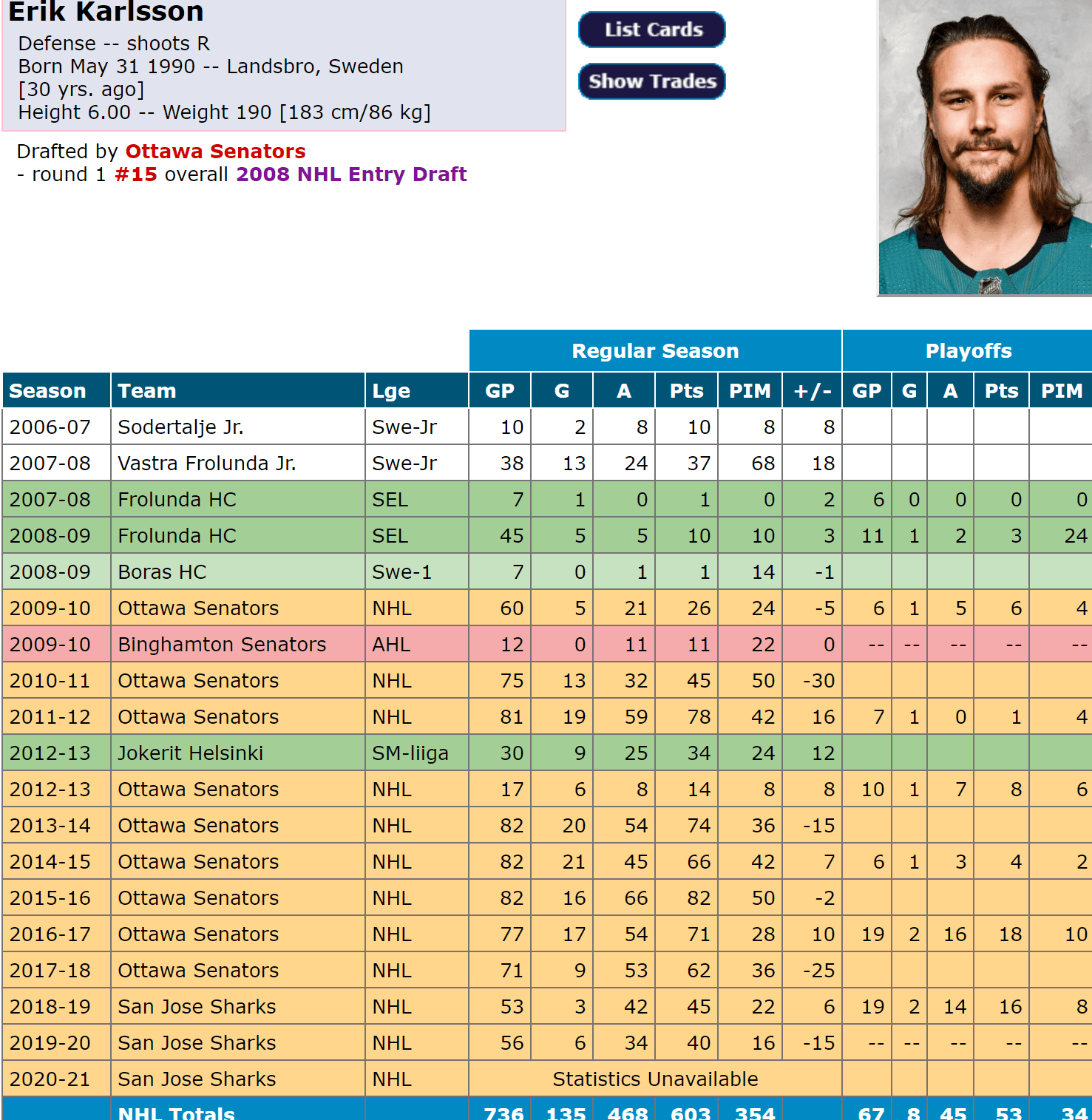 Karlsson’s point totals through his ELC were excellent, putting up almost a point-per-game in 2011-12 and then immediately cashing in on his second contract with the Senators.