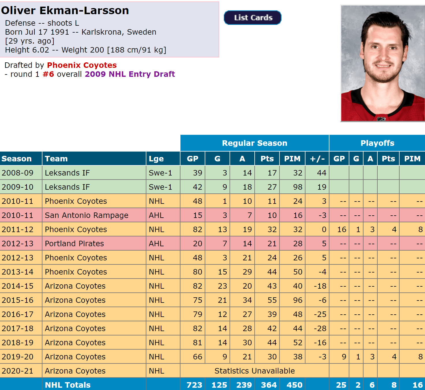 Ekman-Larsson is another example of a defenceman getting off to a slow start in their NHL career, which has not been the trend for young defencemen lately around the league. OEL also started the year in the AHL the year he signed his extension, which is something that wasn’t ever really a consideration with Hughes.