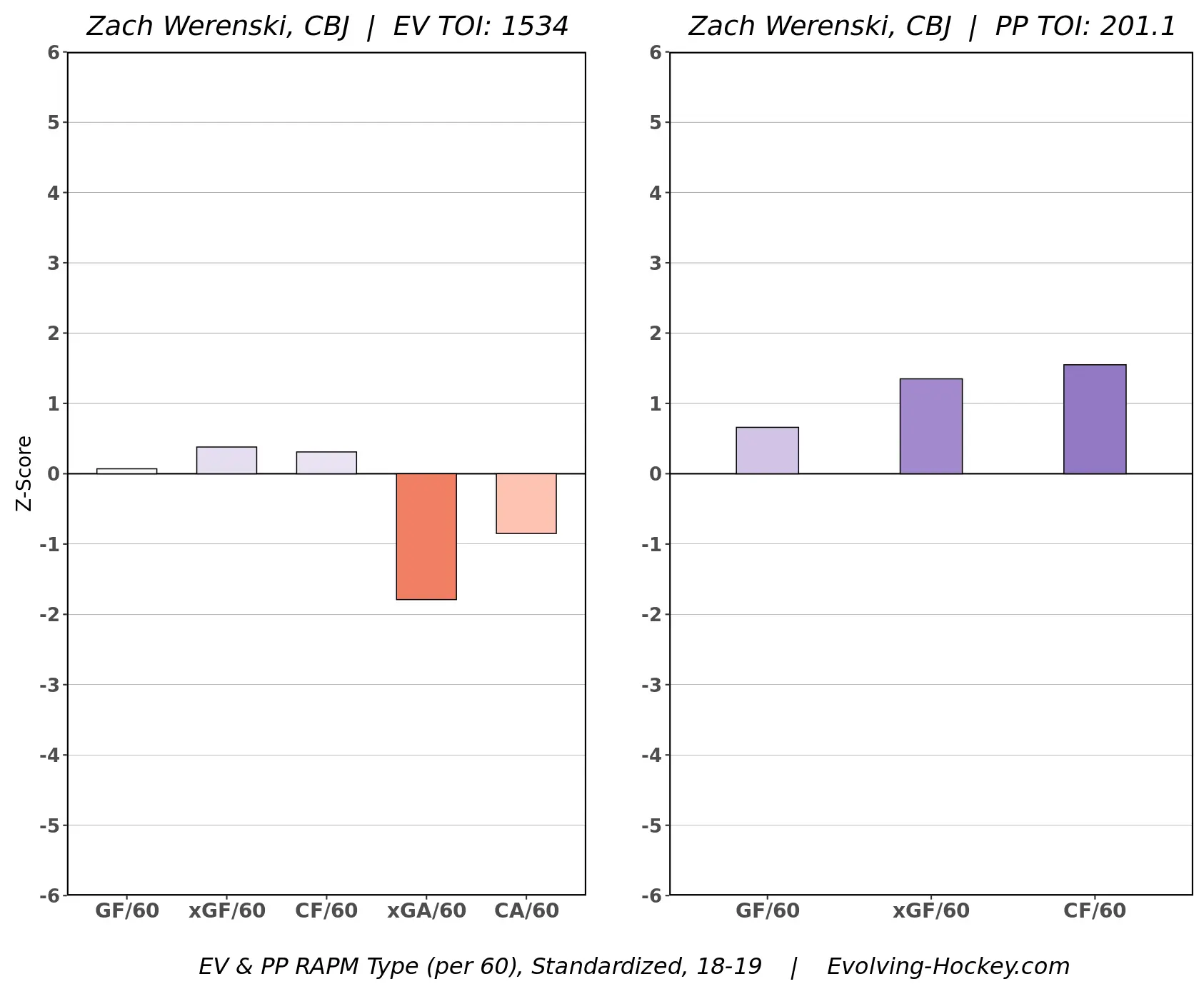 Looking at advanced metrics from the 2018-19 season for Werenski, Hughes gets the edge defensively while also being able to create more chances at even strength and on the power-play. Chris Tanev may have been a factor in Hughes’ defensive metrics, but we’ll have to see if he can sustain that this upcoming season.