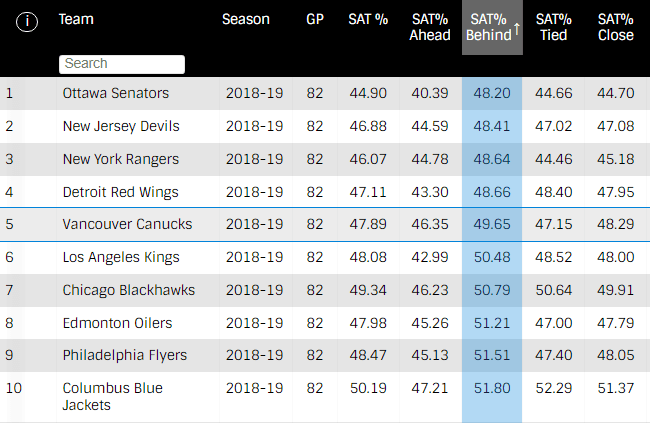 If there’s one statistical column to focus on, however, it might just be the Canucks’ possession performance while trailing or tied—also known as the ability to overcome adversity.