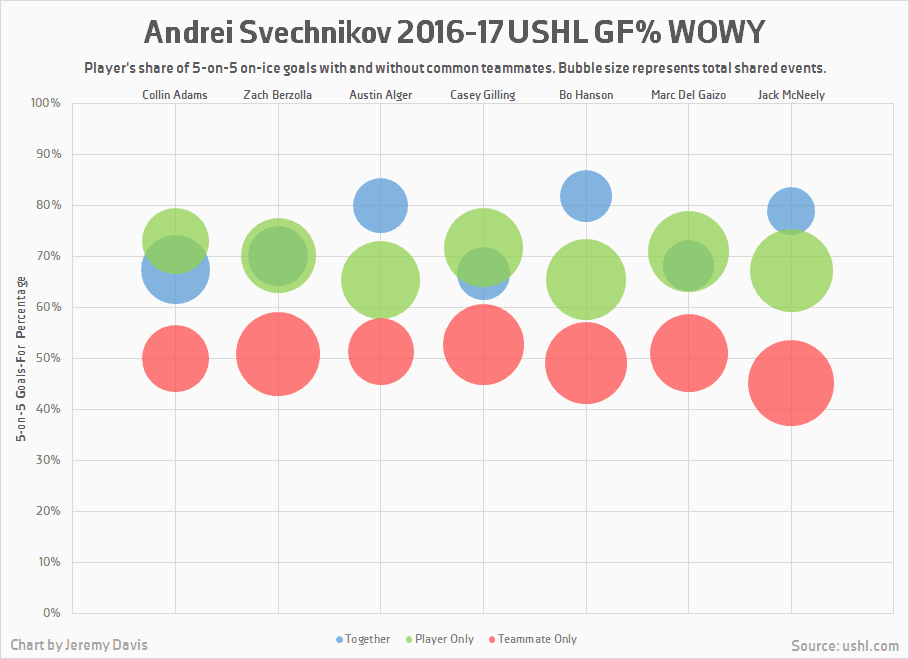 The effect of Svechnikov on his teammates was universal, as illustrated by the following graph.