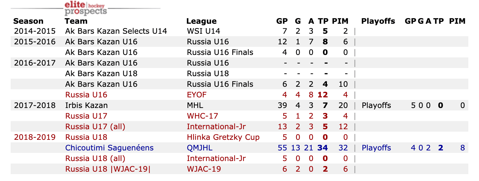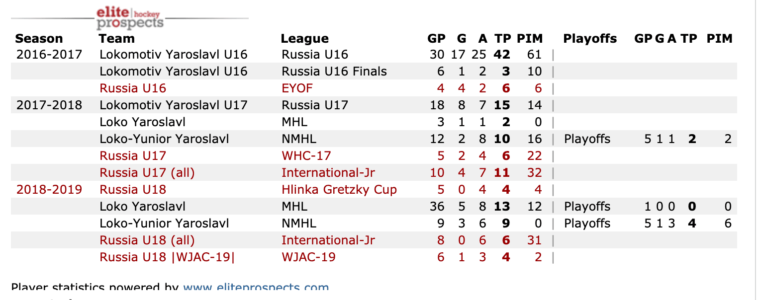 “While his point totals in Russia’s top junior league, the MHL, don’t jump off the page, Gutik can be a forced to be reckoned with out on the ice thanks to his enormous frame and soft hands. – Derek Neumeier – Future Considerations