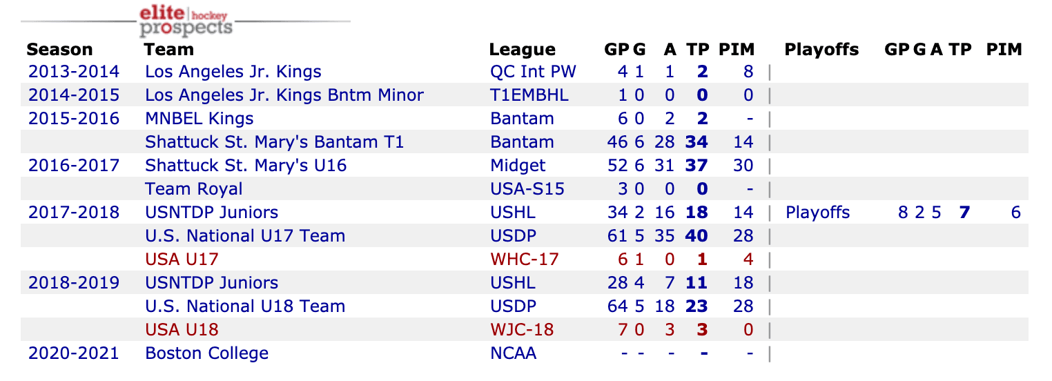 I’m a two-way defenseman who has the ability to create offensively with my passing coming out of the zone. I have that defensive aspect of my game where I can play physical in my own end. I want to make guys not want to play against me. I definitely take pride in my own end first. – Casey McCarthyHas good size, excellence feet and terrific all-around skills and offensive capabilities. Poised with good size and hands. Seemed to out-shine the rest of the highly regarded US defenders in the Five Nations Tourney last August. Committed to Boston University. – Bill Placzek, Draft Site