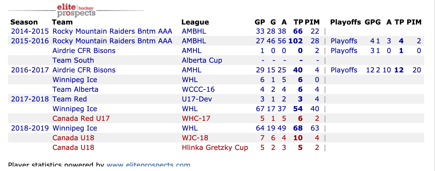 Peyton Krebs is a potent point-producer and offensive catalyst that rises to the occasion whenever he’s on the ice. He is a smooth, shifty skater that traverses all three zones with ease and closes the gap on the backcheck quickly. Defensively, his understanding of the game communicates itself through his proactive positioning and an active, lane-disrupting stick. Willing to go to the dirty areas and fight for the puck, but isn’t at his best there. Offensively, below the opposition’s blue line, he is an electric, dominant force that showcases excellent decision-making and undeniable puck skills. He’s aggressive, but never takes stupid penalties that will put his team in disadvantage state. Krebs’ hockey sense is on full display when he’s making moves, creating space, and orchestrating opportunities for himself and linemates. All-in-all, Peyton Krebs is an exciting mix of speed, skill, smarts, and hard-nosedness in all three zones. He’s got a very high ceiling. – Curtis Joe, Elite ProspectsThe supremely skilled forward is elusive and shifty with the puck. Takes creative lines to dangerous areas of the ice. The type of player that sees plays develop before those around him and uses that to exploit the opposition. Owns terrific puck skills. First-line talent with a fourth-line work ethic. A playmaker who can impact the game on any shift. Everything runs through him in Kootenay… I mean Winnipeg. – Cam Robinson, Dobber ProspectsSpirited competitor with skill and competitiveness. He was the top pick in the Bantam draft. Dynamic game changing centre-forward with above average skills in all areas and a player who leads by example. Despite not being a big man, he plays a high energy, no shift off game. Has a strong defense zone presence, and battles hard in all three zones and all the gritty areas. Excellent skater with a long stride, who uses his edges and body to separate himself and not hemmed in, always has enough room to find his teammates or pick a corner with a hard snapper. Displays terrific vision and feel on the attack. Very good face off man, and one of the best in junior at making the right decision of whether to shoot or to pass on every given play. Can no look pass with the best of them. Can play both positions as he ascends to higher levels. A true on ice leader who gives it all shift after shift. – Bill Placzek, Draft Site