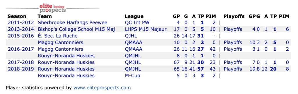 Profile: One of the youngest players eligible for the 2017 NHL Draft and passed over in the 2018 NHL Draft, Bergeron will be an overager at the 2019 NHL Draft by just a matter of hours. The Quebec blueliner is a great skater with strong offensive skills. His impressive season with the Huskies in the QMJHL almost ensures he won’t get passed over again this year.