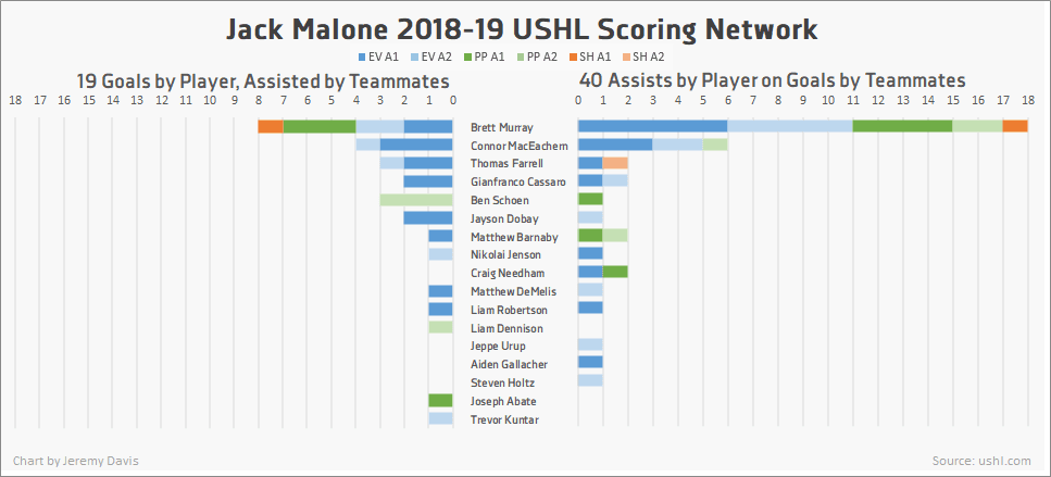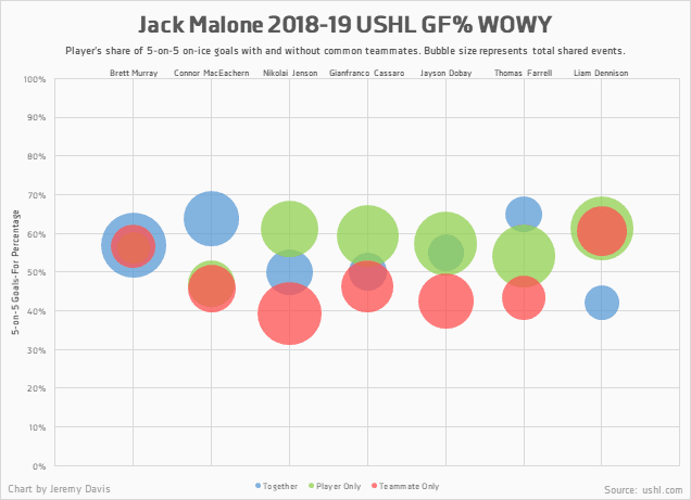 Malone finished this past USHL season with 19 goals and 40 assists in 57 games and was very effective with a variety of different linemates at controlling goal share.