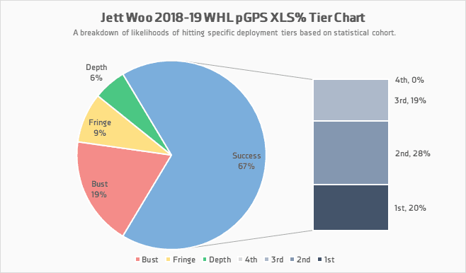 Woo’s pGPS Tier Chart shows just how much Woo has elevated his status as a prospect—and, subsequently, his odds of finding top-flight success at the NHL level. Davis’ system and the Canucks’ front office staff are both of the mind that Woo has elite potential—and they’re not the only ones.