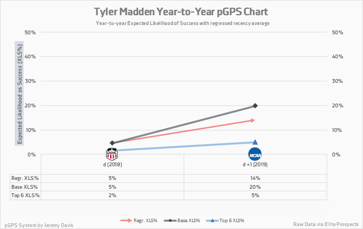 Madden’s XLS% took a huge jump up from last year, thanks to an impressive freshman year with the Northeastern University Huskies.