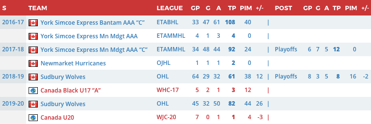 As my colleague Chris Faber said in his article to kick off this series, this is Alexis Lafreniere’s draft. However, I don’t agree with his statement that the draft lottery winner will pick Lafreniere without hesitation. Because Byfield plays a premium position and has such a high upside, I wouldn’t be surprised if a team has Byfield at the top of their rankings. We should also mention that Byfield is almost a full year younger than Lafreniere, 10 months to be exact. That’s a huge gap in prospect development and should be taken into consideration.