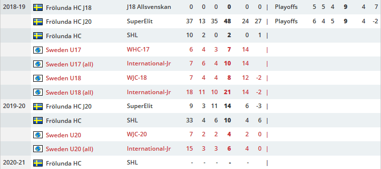 On many of the odd-man rushes that he received in the SHL, he looked to be a pass-first player. His shot isn’t bad, it’s accurate but doesn’t pop off the screen like some of these bigger and stronger top-end prospects. His accurate shot and passing ability will be excellent for any team’s powerplay. I think this is where his skills will shine at the NHL level. He can run his strong side with the ability to walk in to shoot or find a teammate in the bumper position for a quick one-timer.