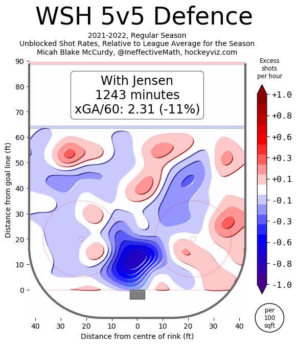 Jensen was fourth-best in the NHL when it comes to goals against. He benefited from a .937 save percentage in that time but he was also 33rd best in the NHL when it came to expected goals against at five-on-five last season.
