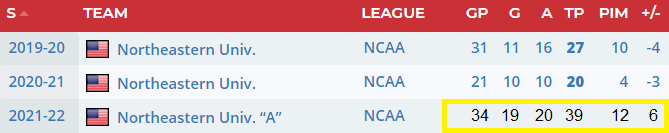 He proved that he could impact a game in more ways than just on the power play and that resulted in him winning the Hockey East’s Three Stars Award for the most combined three stars of the game selections this season. Not only did his scoring improve, but his physical side also began to show more and more and with that, he was able to get to the net more and that resulted in many more scoring chances at even-strength.