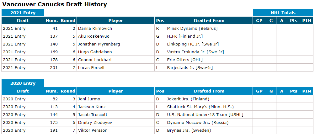 Draft history via HockeyDB
