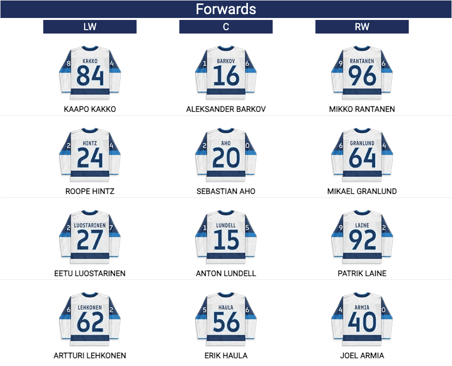 Kevin Lankinen will get his second consecutive start for Team Finland, with Juuse Saros serving as the backup.