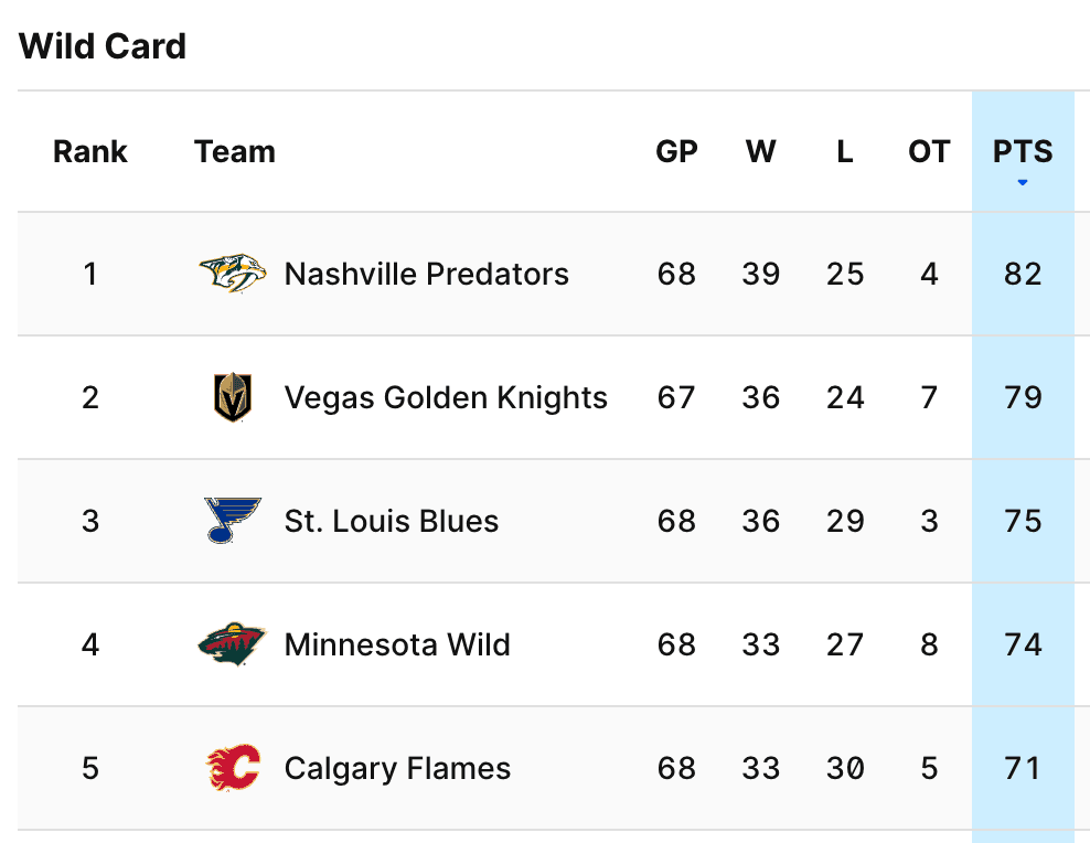 If the playoffs started today, the Canucks would face the Vegas Golden Knights, who currently slot into the second wild card spot in the west. Now, there are a few scenarios here, but first, let’s take a look at the western wild card race: