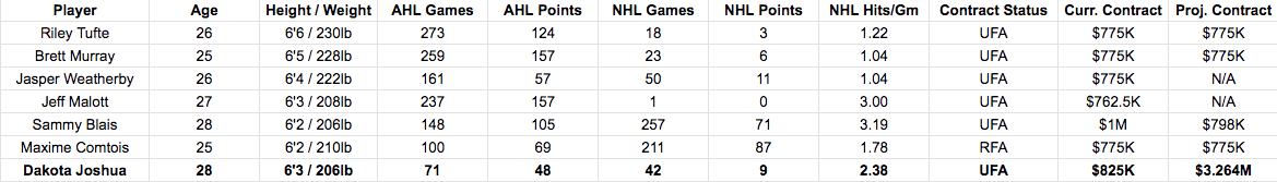 Now, this might be a stretch, considering his NHL experience is almost zero, but his production at the AHL level stood out as worthy enough for a shot in the big leagues. Malott’s frame suits Joshua’s as he sits at 6’3, 208-lb.