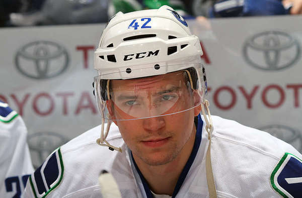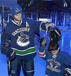 Cole Bieksa suited up beside his father for the national anthems ahead of Monday’s game. No word on whether he’ll get $10.8 million for doing exactly what Luca Sbisa does on a nightly basis.
