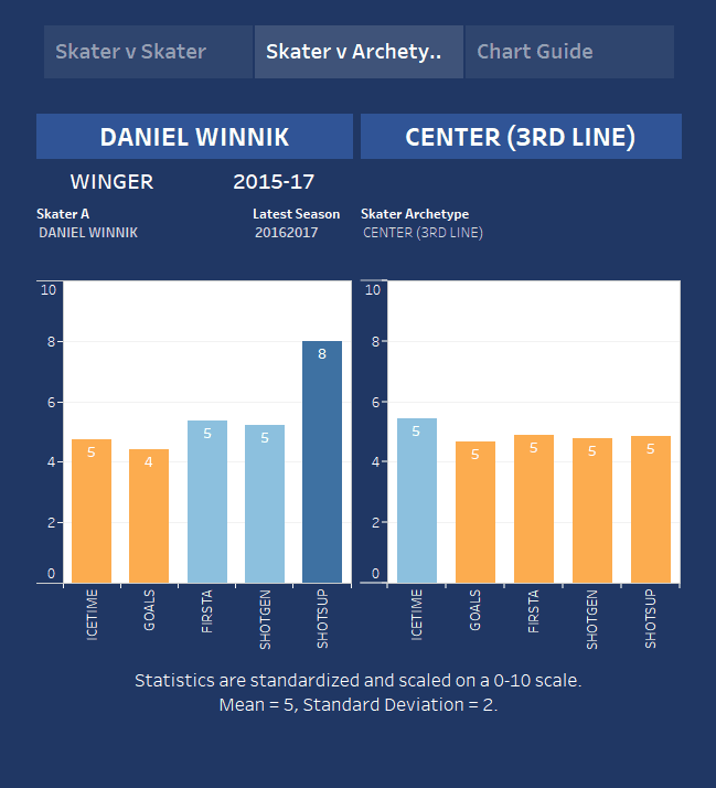 Daniel Winnik has carved out a niche as the ideal bottom-six journeyman centre, producing offense at an average third-line rate while posting near-elite shot suppression numbers. He’s among the least sexy names in this year’s crop of UFAs, but he does what he does extremely well, and the Canucks have struggled mightily at both ends of the ice for the past two years.