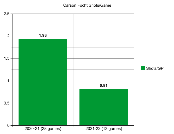 Focht showed like he may have some promise in his rookie season but he may be a good example of how last year’s AHL was watered down. He is attempting way fewer shots than he was last season as he was beginning to show well in the second half of last season. Focht was averaging 1.93 shots a game last year and is now down to just 0.81 through 16 games.