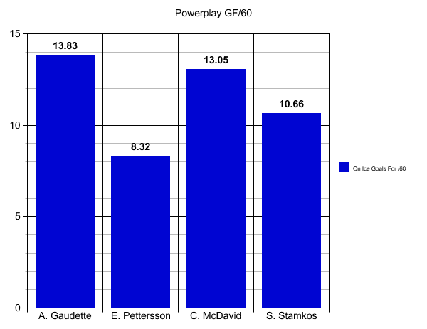 The Tampa Bay Lightning second unit scores at a 10.23 GF/60 rate, which is relatively high for a second unit. It is hilarious to look at the Oilers power play without Conner McDavid. When McDavid is not on the ice their power play is scoring a pitiful 1.92 GF/60.