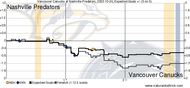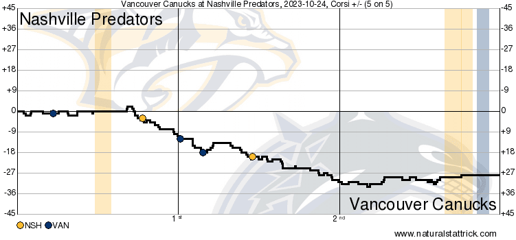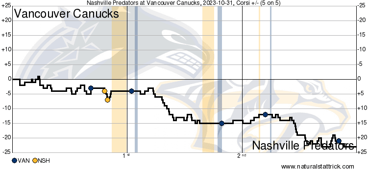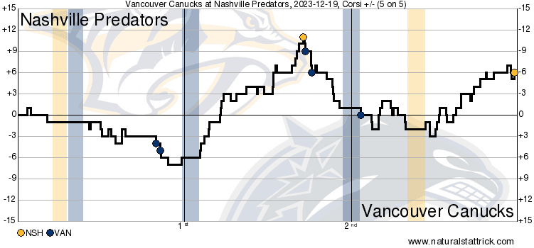 The gameflow charts tell the same story, with Nashville being the ones to take over the game as it progressed. But as they were taking over, they weren’t scoring, and the Canucks were: