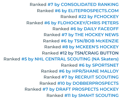 Based on his cumulative rankings, Leonard should be picked eighth overall at this year’s draft, which is a bit of a deflation based on his 22nd overall rating by FC Hockey, which is miles off from where he’s been anticipated to go by every other scout. On Elite Prospects’ list, he’s sitting at sixth, which is the highest he’s been projected to go. Suppose he wasn’t selected in the top five, he’s almost guaranteed to be chosen by a team with the sixth to 11th pick — that of course, being the Canucks’ selection. If the Canucks did want to trade up for Leonard, they’d have to do so with either the Arizona Coyotes (#6), Philadelphia Flyers (#7), Washington Capitals (#8), Detroit Red Wings (#9) or St Louis Blues (#10) draft picks.