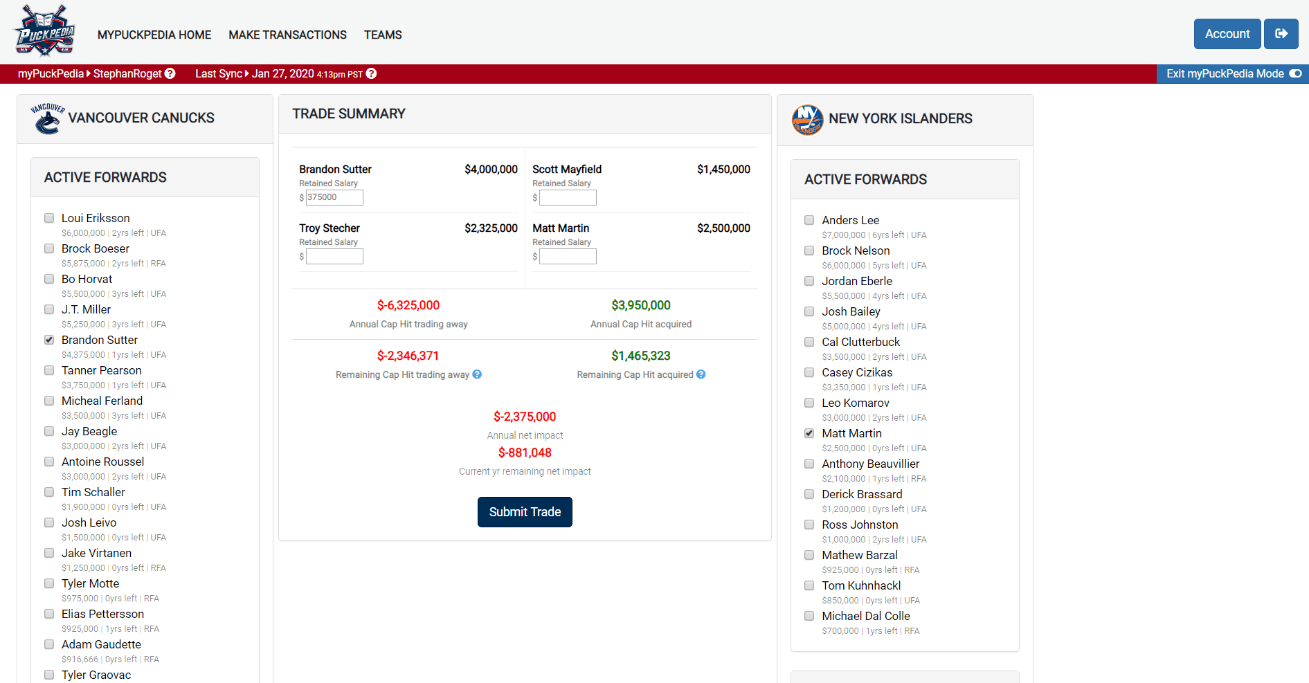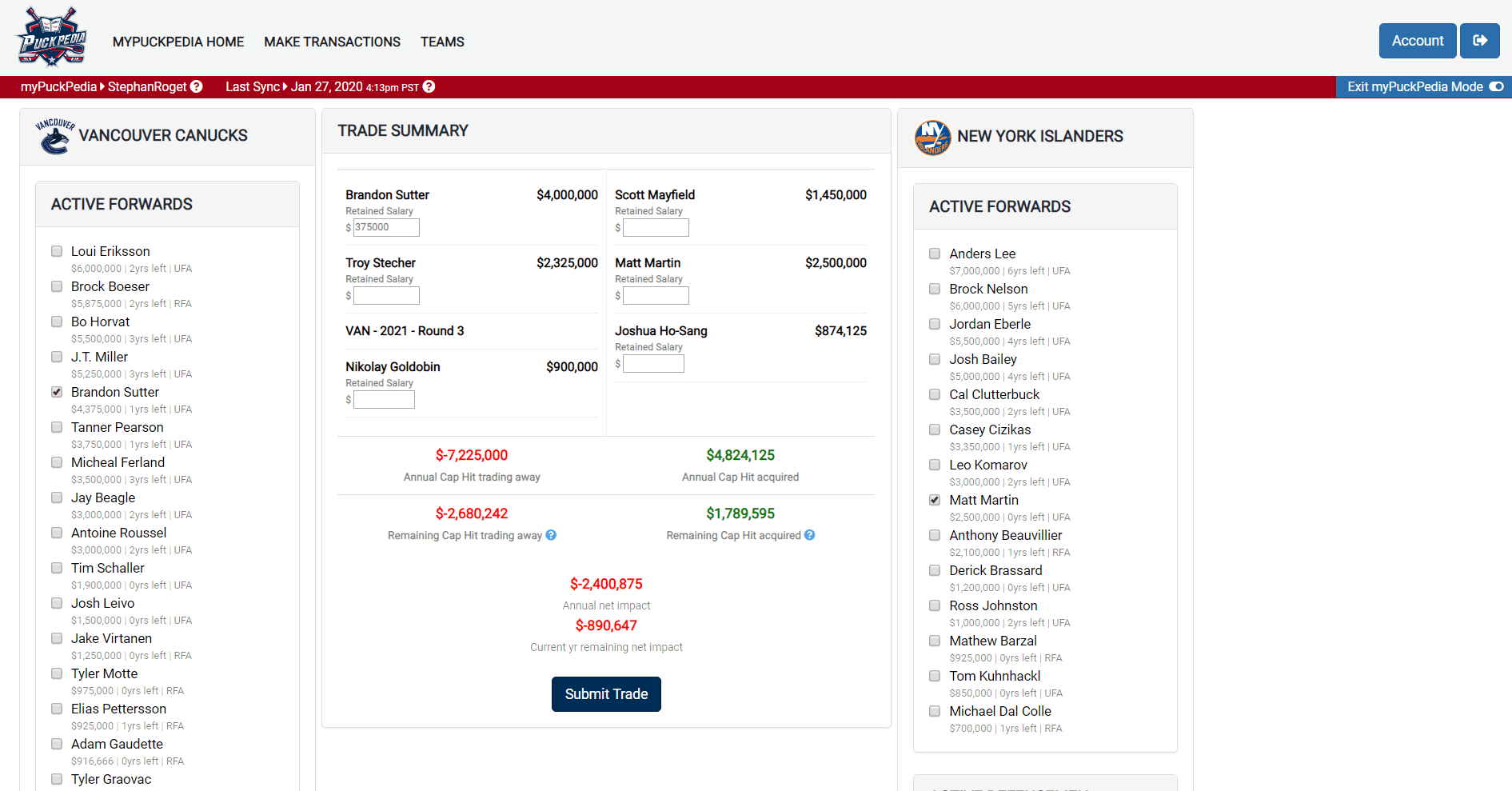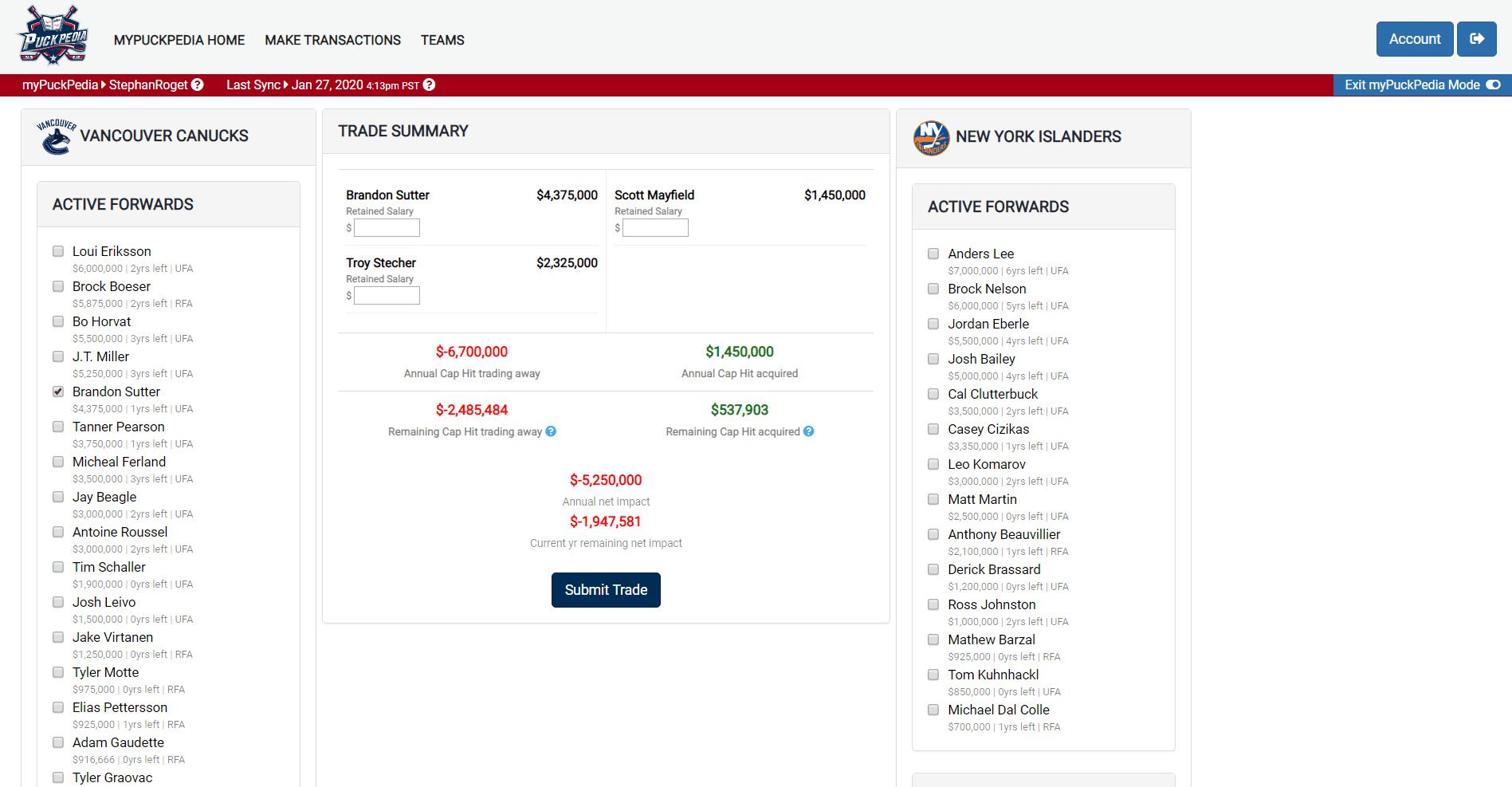 With that, our not-so-little trade is complete. Did it end up being a fair deal? Unfortunately, even the myPuckPedia GM Mode app can’t tell us that. But you can, on social media!