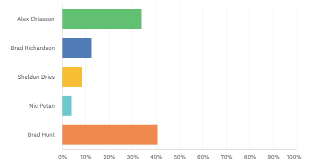 Luke Schenn received one write-in vote, with another voter writing “chaos giraffe” on their ballot.