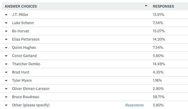 There were also a handful of votes for Bo Horvat and Elias Pettersson, as well.