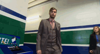 - On the topic of looking snazzy, check out Eddie Lack’s pre-game look. Three piece suit, pocket square, and is that a floral shirt I see? Beautiful.
