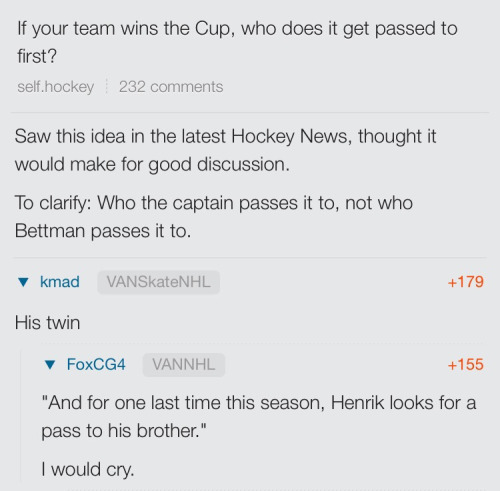 - Because we all need a little bit more pain in our lives, let’s all think about Henrik Sedin passing the Stanley Cup to Daniel Sedin.