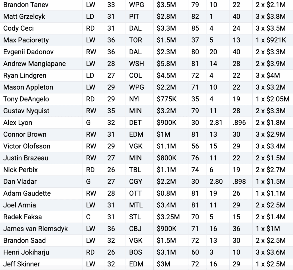 Do you see any names on that list who could be bargain bin signings that could be anything more than bottom or middle six wingers? Perhaps the one that stands out the most Victor Olofsson, who scored 28 goals just two seasons ago.